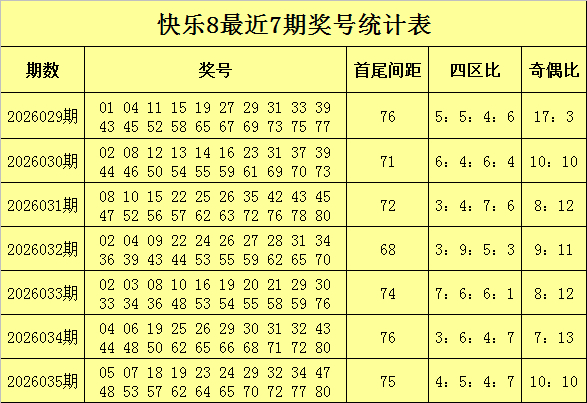 福彩快乐8第2026035期开出奖号:05 07 18 19 23 24 29 32 34 47 48 53 57 62 64 65 70 72 77 80,其中奖奇偶比10:10,四区比为4:5:4:7,跨度为:75。