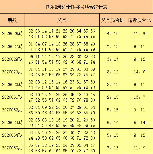 福彩快乐8第2026035期开出奖号:05 07 18 19 23 24 29 32 34 47 48 53 57 62 64 65 70 72 77 80,其中奖号质合比为7:13,奖号尾数质合比为11:9。