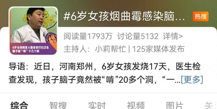 近日,河南别称6岁女孩抓续发热17天,医师查抄发现其脑部被真菌侵蚀出多个缺乏,激发泛泛和蔼。