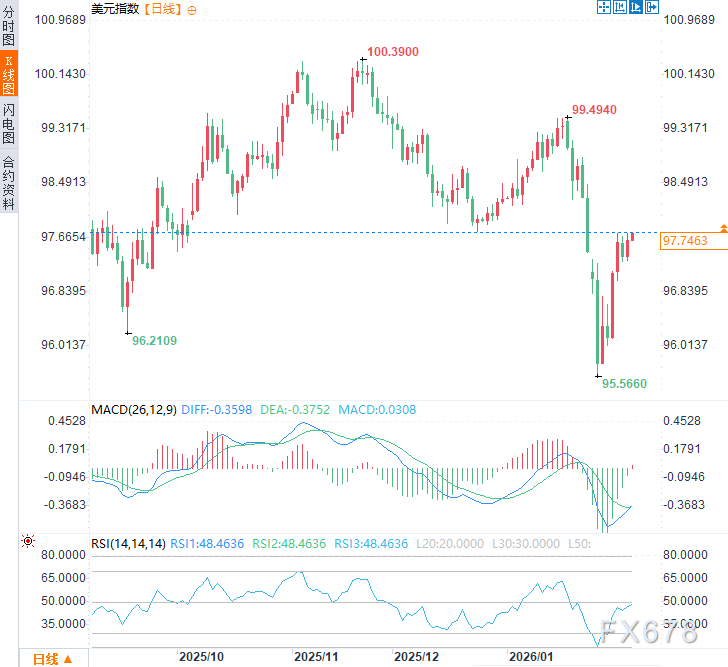 (美元指数日线图,来源:易汇通)北京时间10:32,美元指数现报97.70。