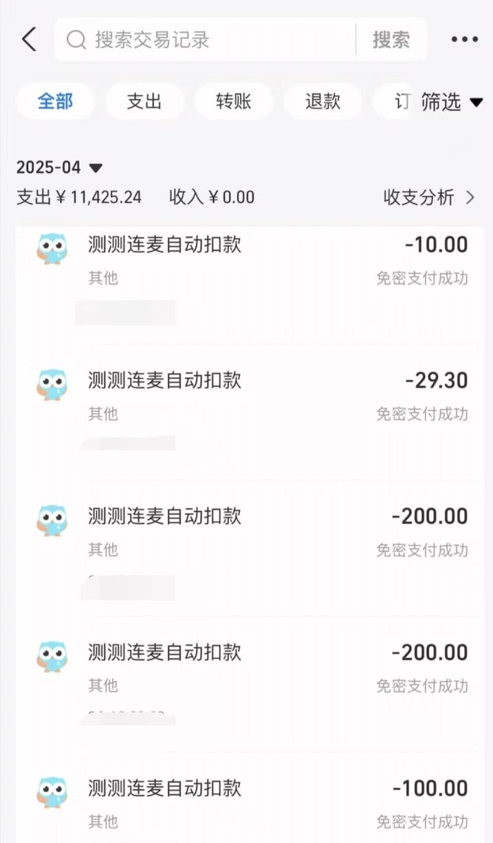 在她向《BUG》栏目提供的付费纪录中,仅2025年4月,她在测测App与平台达东谈主进行付费连麦的支拨就已跳跃 1 万元。